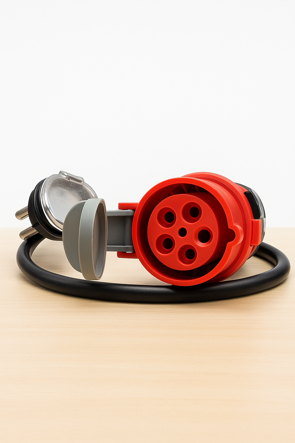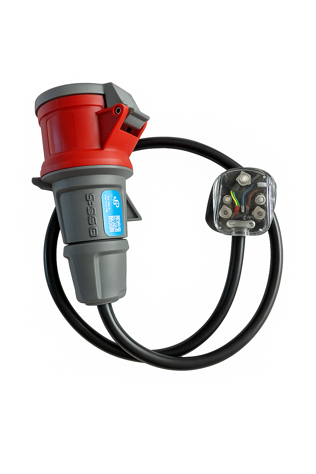 - 16A three phase Industrial plug to 16A 3-pin residential plug converter cable.